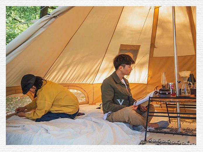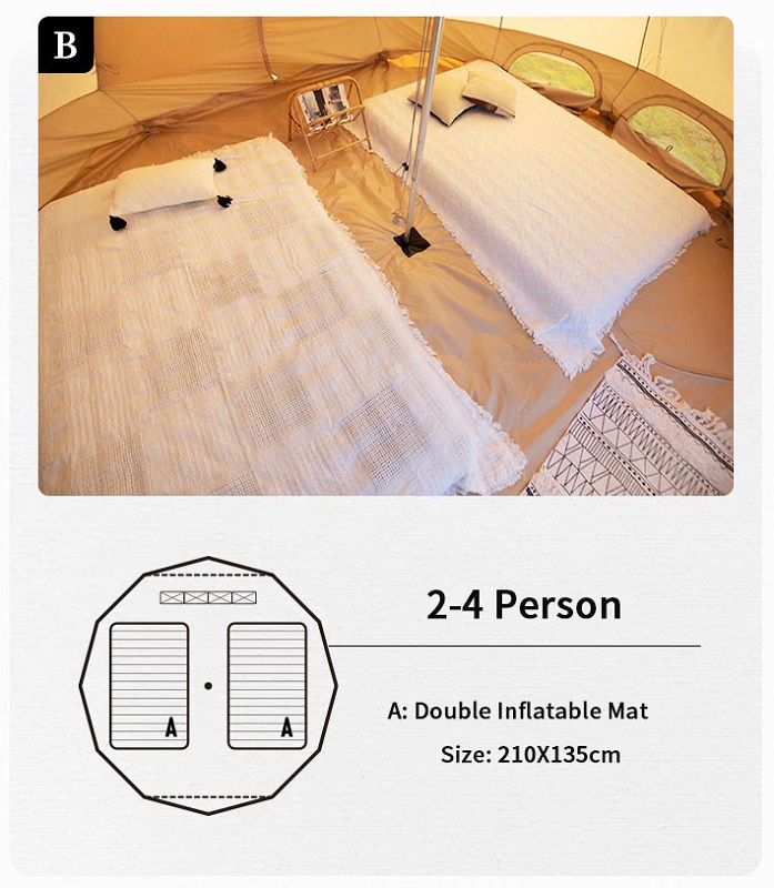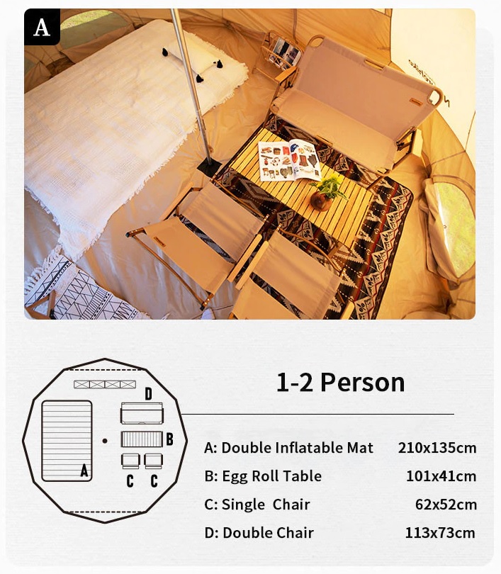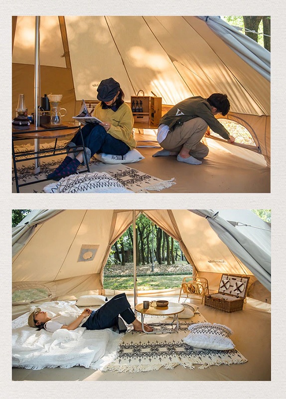 Không gian lều rộng rãi có thể tùy ý thiết kế thêm giường, đệm, bàn, ghế… như 1 phòng ngủ mini